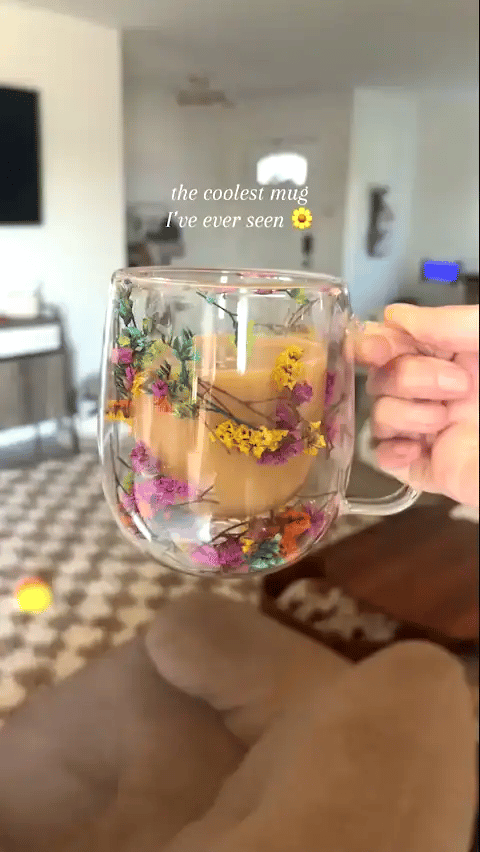 Pour in your favorite beverage (hot or cold), cradle the comfortable handle, and enjoy watching the flowers dance as light filters through your drink. The double-wall construction means you'll never need a coaster, and the smooth glass makes cleaning as simple as a quick rinse or toss in the dishwasher. It's designed for daily use, not just display.