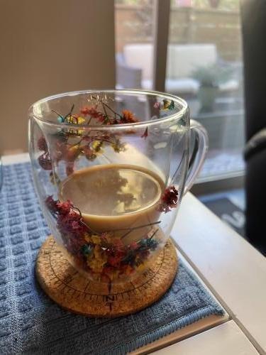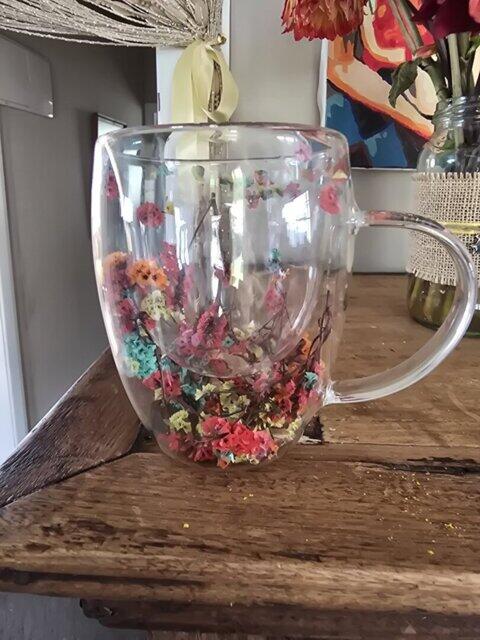 Since each mug is handcrafted with real flowers, the exact arrangement and colors will vary slightly from the photos. This means your mug is truly one-of-a-kind! You'll receive a beautiful mix of preserved flowers similar to what's shown.